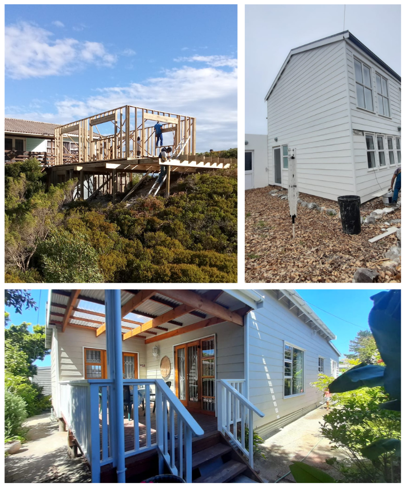 Based in Gordon’s Bay, we operate across the Western Cape — from Cape Town to Hermanus, Overstrand, Mossel Bay, and the West Coast. Our team is made up of skilled and experienced craftsmen, including carpenters, bricklayers, painters, tilers, skimmers, and roofing specialists, all working under the guidance of industry expert Bernold Benson.